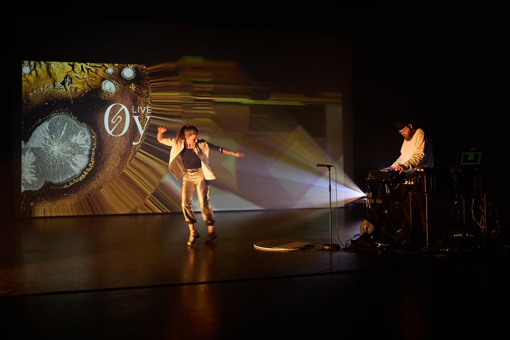Hver forestilling er improvisert og unik, i et levende samspill der grensene mellom danser og musiker, instrument og kropp, hele tiden forskyves. I duoen Øy forener steppdanser Janne Eraker og elektronisk musiker Kristoffer Lislegaard sine kunstneriske verdener i et grenseløst møte mellom dans og lyd. Sammen utforsker de en konsertform der dansen blir musikk og musikken beveger seg – bokstavelig talt. Erakers steppdans prosesseres i sanntid av Lislegaards egenutviklede programvare. Resultatet er en interaktiv dialog: steppdanserens bevegelser påvirker lydene, og lydene former dansens uttrykk. Sammen skaper duoen et organisk og dynamisk samspill, der det veksles mellom sømløs enhet og kontrastfylt dialog.